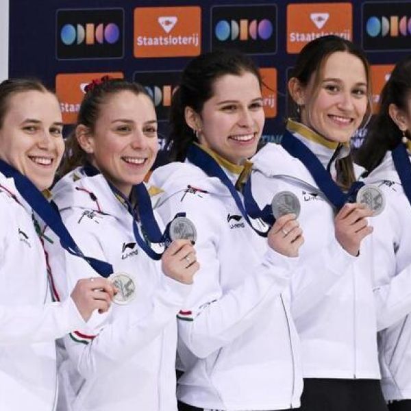 A magyarok ezüstérmet nyertek a nők 3000 méteres váltóversenyében a rövidpályás gyorskorcsolyázók drezdai Európa-bajnokságának szombati napján.
