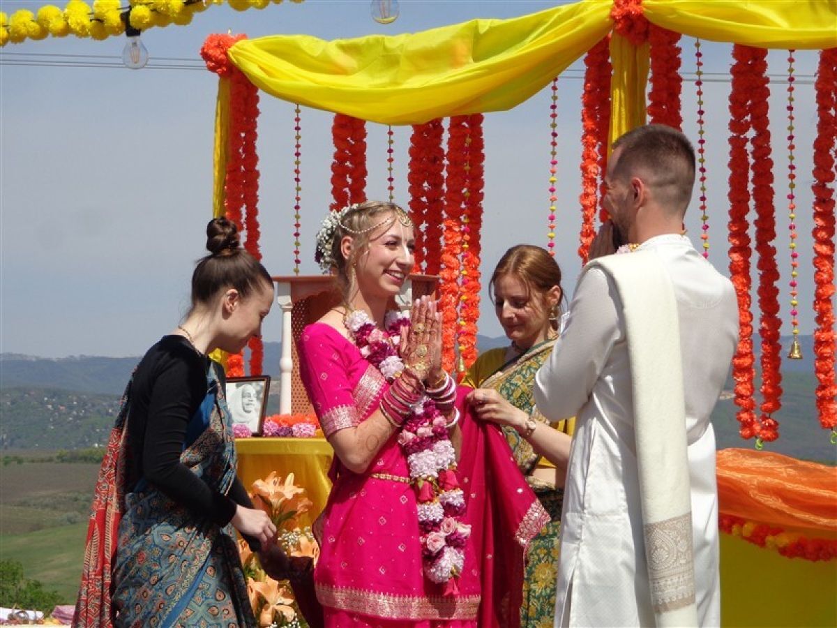 Egy hagyományos Krisna-hívő szertartás keretében mondták ki a boldogító igent. A nemzetközi násznép előtt zajló esemény bebizonyította: a léleknek nincs nemzetisége, a valódi béke pedig ott születik, ahol a kultúrák szeretettel találkoznak.