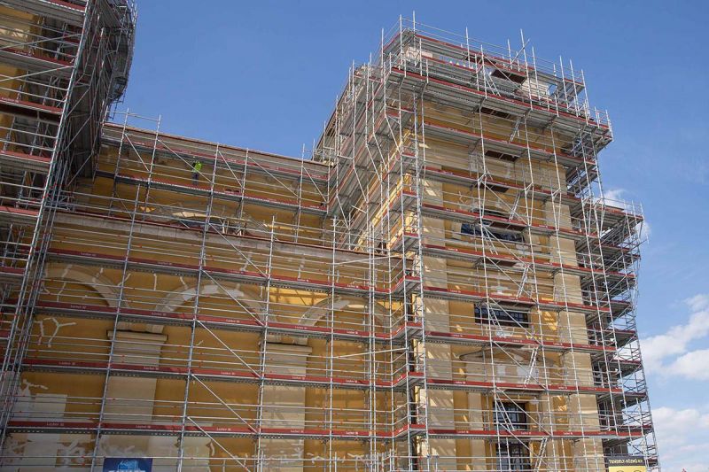 Arról is beszélt: a festés nagyon fontos, de a technológiai sorrend sem érdektelen. Jelentős számban dolgoznak kőrestaurátorok az épületen, fémrestaurátorok kisebb-nagyobb szoborapplikációkat végeznek, feliratokat aranyoznak. E vállalkozók munkáját kiegészíti az állványozó, aki a nagy felületek festése után mihamarabb leállványoz annak érdekében, hogy a csapóeső ne rondítsa a kész, festett falakat.