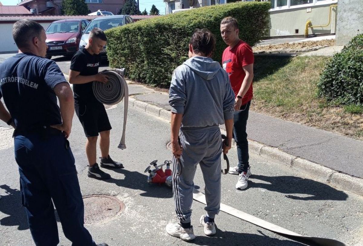 Az egyhetes tanulást és gyakorlást egy vizsga követte, melyen először tesztet töltöttek a fiatalok, majd ahogyan a tűzoltóktól tanulták, szakfelszereléseket használva, tömlők szereltek és megmutatták milyen taktikával leggyorsabb a tűz oltása.
