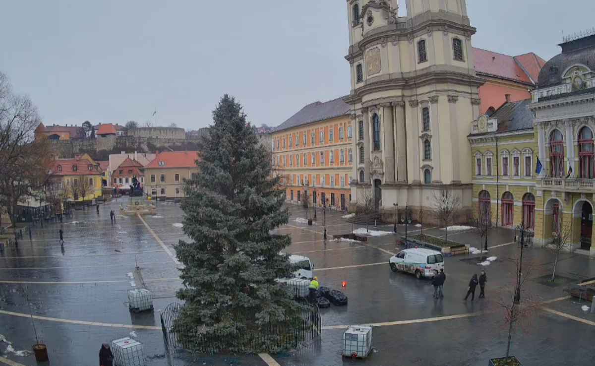 A Városgondozás Eger Kft. munkatársai megkezdték a Dobó téri karácsonyfa bontását: a díszeket még ma eltávolítják, ezt követően pedig a fát is elszállítják.