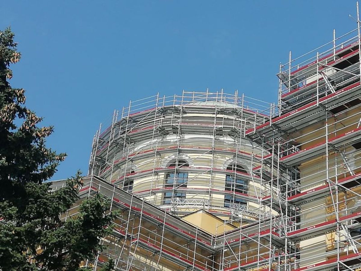 Az alapozás után a kupola már megkapta az új színt, amely már a templom korábbi, tört fehér festését idézi, amelyen bizonyos felületek – ahogy az alább fotón is látható az ablak szegélyénél –, várhatóan maradnak fehérnek.