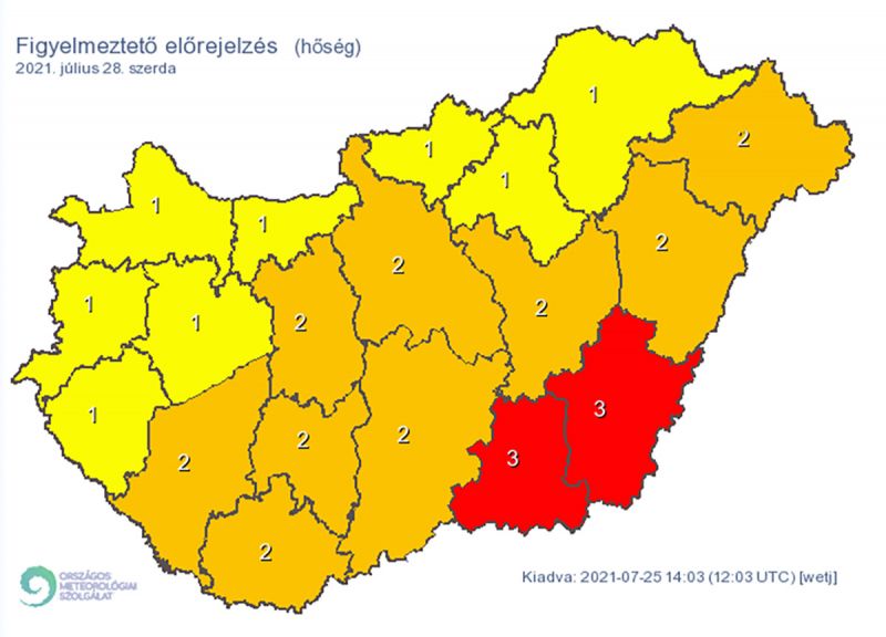 Szerdán is sok lesz a napsütés, de elvétve előfordulhat zápor, zivatar, nagyobb eséllyel az északi megyékben. A szél megélénkül, helyenként megerősödik, zivatarok környezetében átmenetileg viharossá is fokozódik. A minimumhőmérséklet 15-23 fok között valószínű. A maximumok 31 és 38 fok között alakulnak.