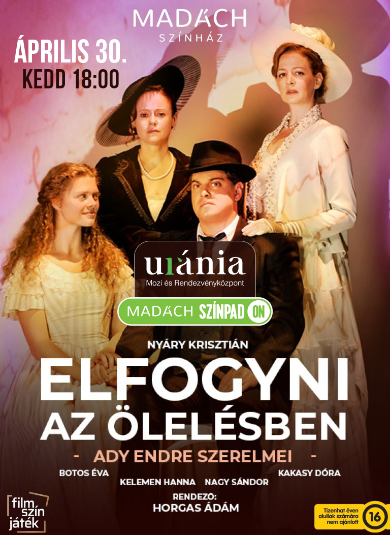 Április 30-án, kedden rendhagyó módon ünnepelnek a Magyar Film Napját az Uránia Mozi és Rendezvényközpontban. A Madách Színház előadásaiból válogatva, Elfogyni az ölelésben - Ady Endre szerelmei kerül a vászonra, mely Nyáry Krisztián forgatókönyve alapján készült, Horgas Ádám rendezésében. A produkcióban Nagy Sándor alakítja a főszereplőt, Adyt, Botos Éva Lédát, Kakasy Dóra Zsukát, Kelemen Hanna pedig Csinszkát.
