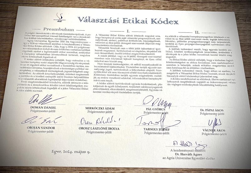 Nem írta alá Mirkóczki Ádám és Pápai Ákos z egri Választási Etikai Kódexet