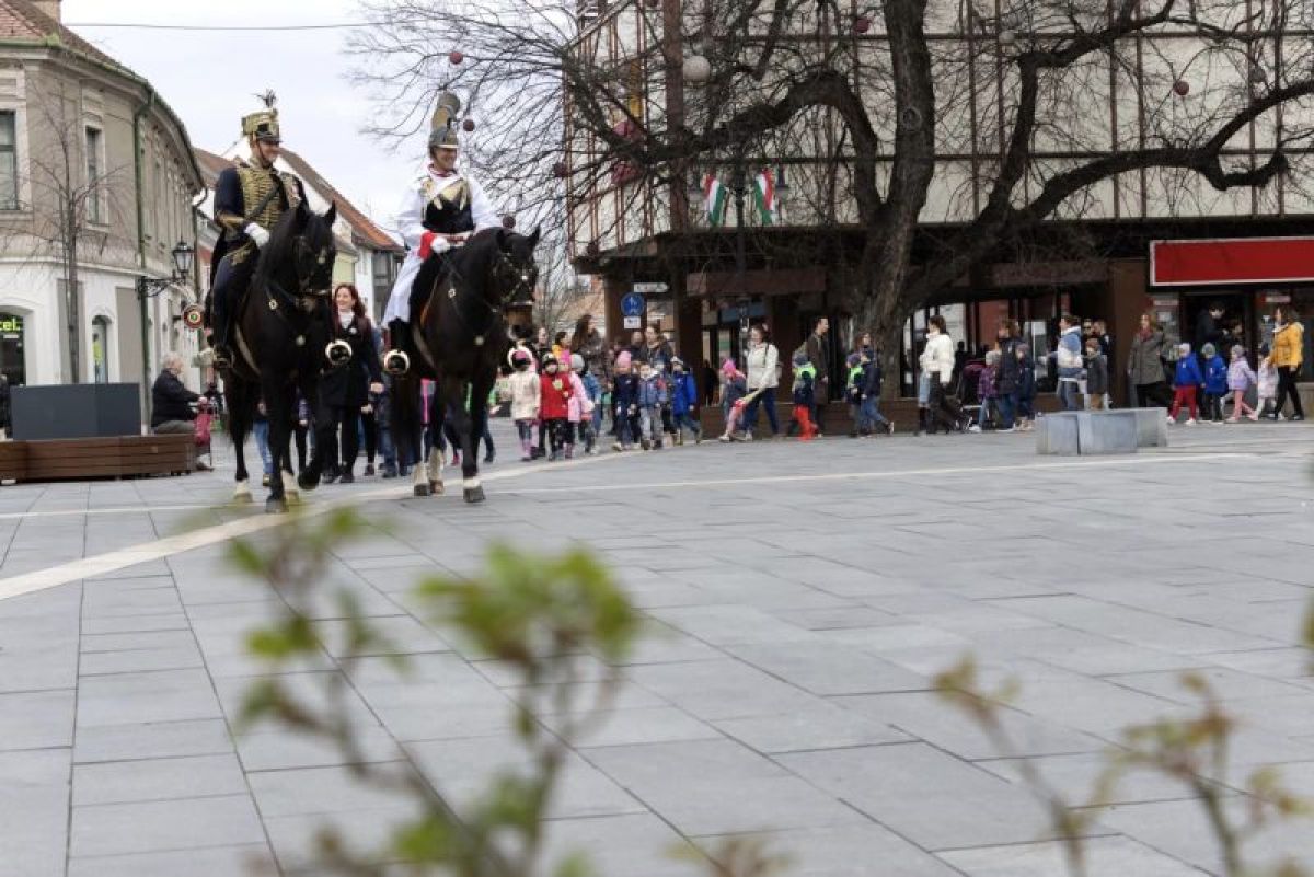 A Felsővárosi Óvodák gyermekei a megemlékezés részeként már hagyományosan a Dobó térről lovas huszárok kíséretében sétálnak át a Petőfi szoborhoz.
