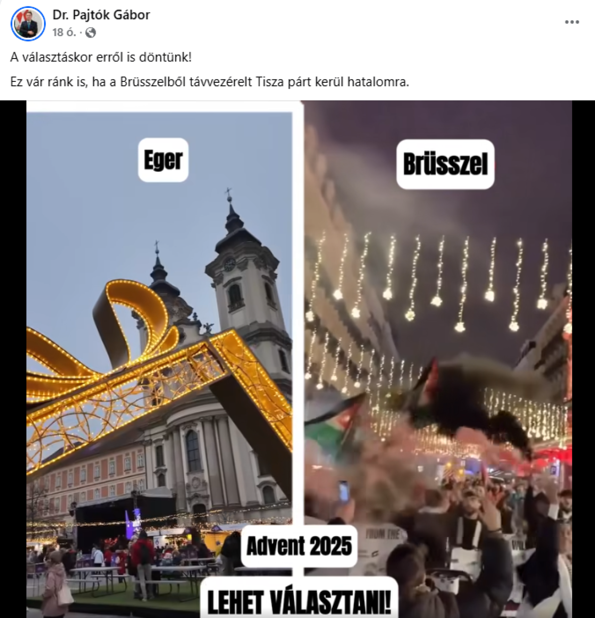 Pajtók Gábor egri országgyűlési képviselő advent elején begyújtotta a rettegés tüzét és egy Egert brüsszellel összehasonlító kisvideót osztolt a közösségi oldalán.