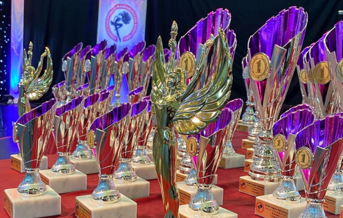 (Az indexfotón a versenyen kioasztott díjak; kép forrása: Modern Táncsportok Magyarországi Szövetsége / Facebook)