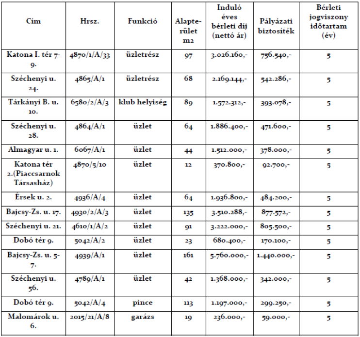 Önkormányzati tulajdonban és az EVAT Zrt. kezelésében lévő helyiségeket. Az ingatlanok előre egyeztetett időpontban megtekinthetőek.