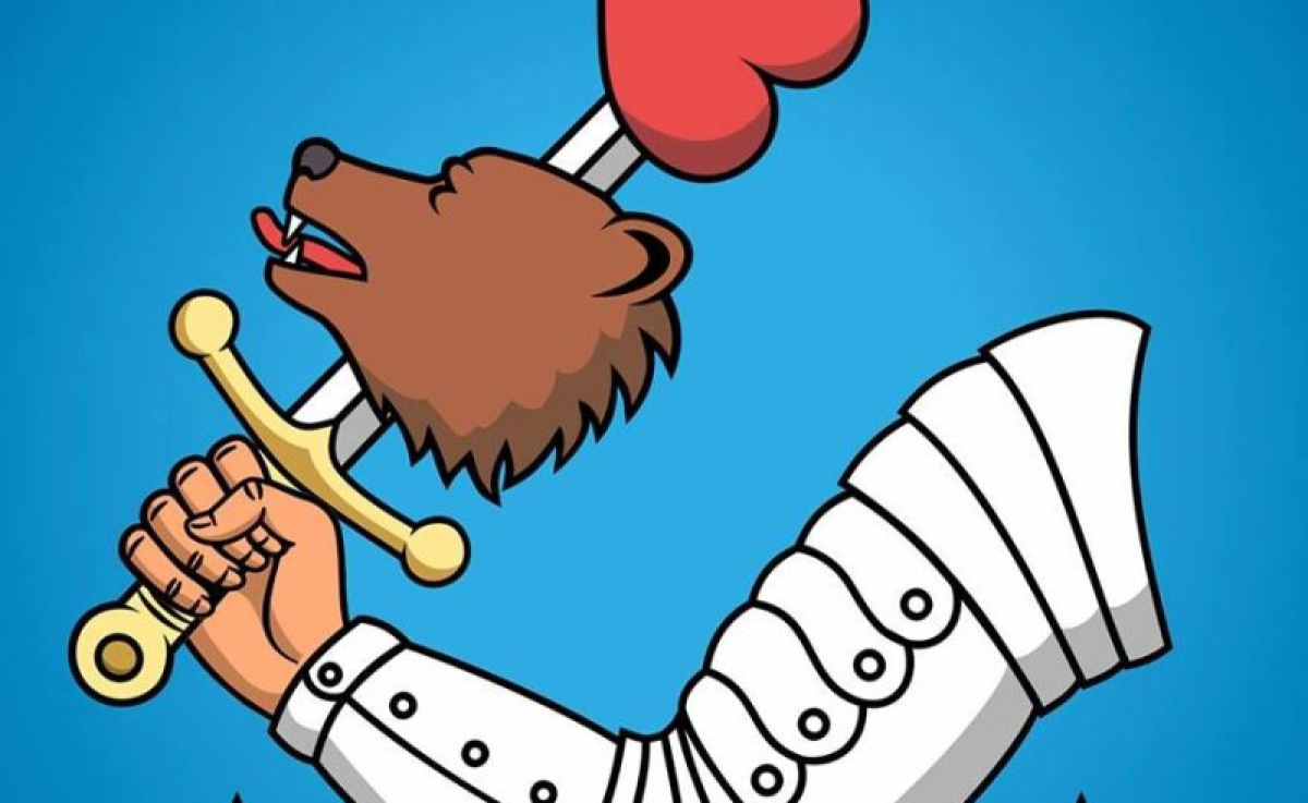 A címeren egyébként egy kardot fogó kar szerepel, a kardon pedig egy medvefej, egy szív és egy korona látható.