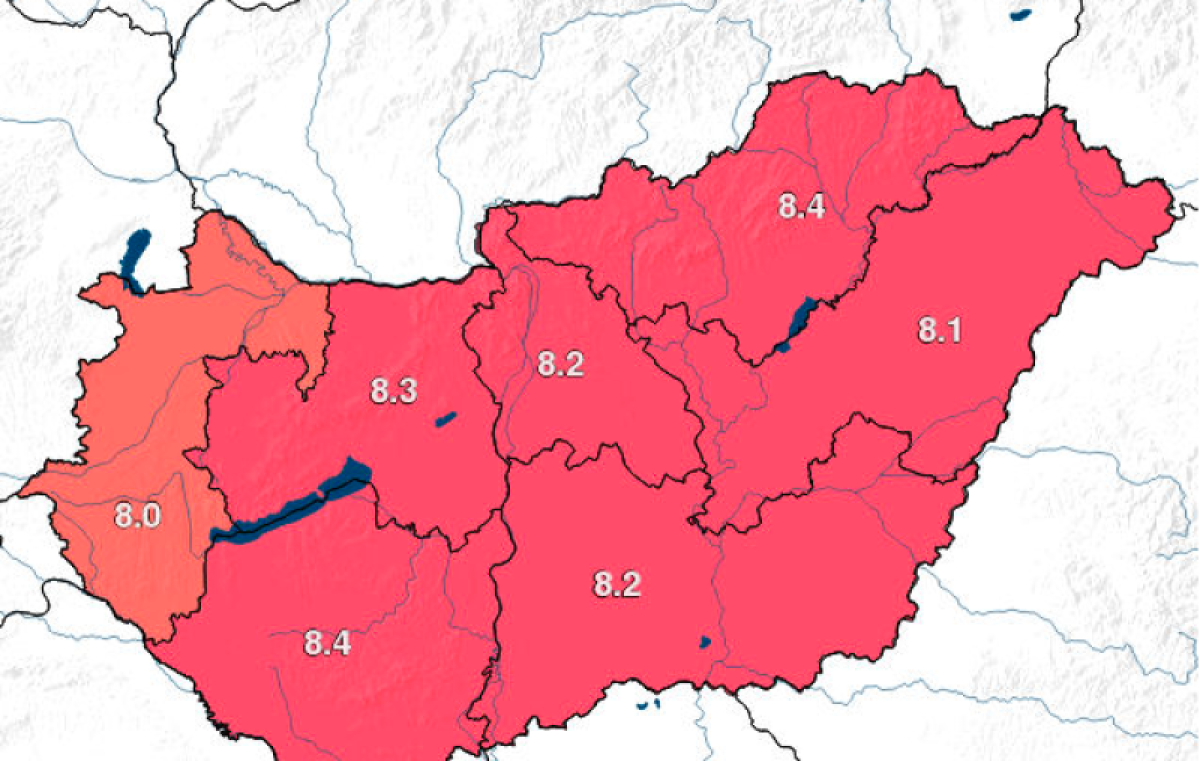 Észak-Magyarország mellett a Közép-Dunántúlon, a Dél-Alföldön, az Észak-Alföldön, valamint a Dél-Dunántúl, Pest megye és Budapest területének több mint 50 százalékán az előre jelzett UV-index a 8-as értéket is meghaladja, ezért ezekre a területekre extrém sugárzás miatt adott ki figyelmeztetést a meteorológiai szolgálat.