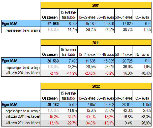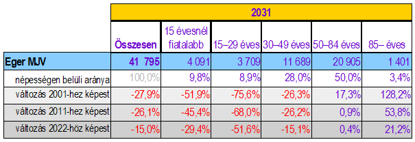 Ebből kiolvasható, hogy Eger -minként ez az egész országra, sőt a fejlett fogyasztói társadalmak mindegyikére igaz- fokozatosan elöregszik. Nagyobb baj, hogy a fiatal, aktív társadalmi rétegek is rohamosan hagyják el városunkat (vagy/és beleöregszenek a következő korcsoportba).