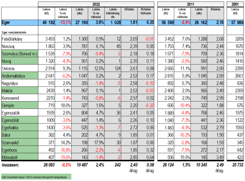 Hogy a képet némileg árnyaljam, a város vonzáskörzetét is megnéztem, alább táblázatban a lakosságszám mellett a lakásállományt is feltüntettem: